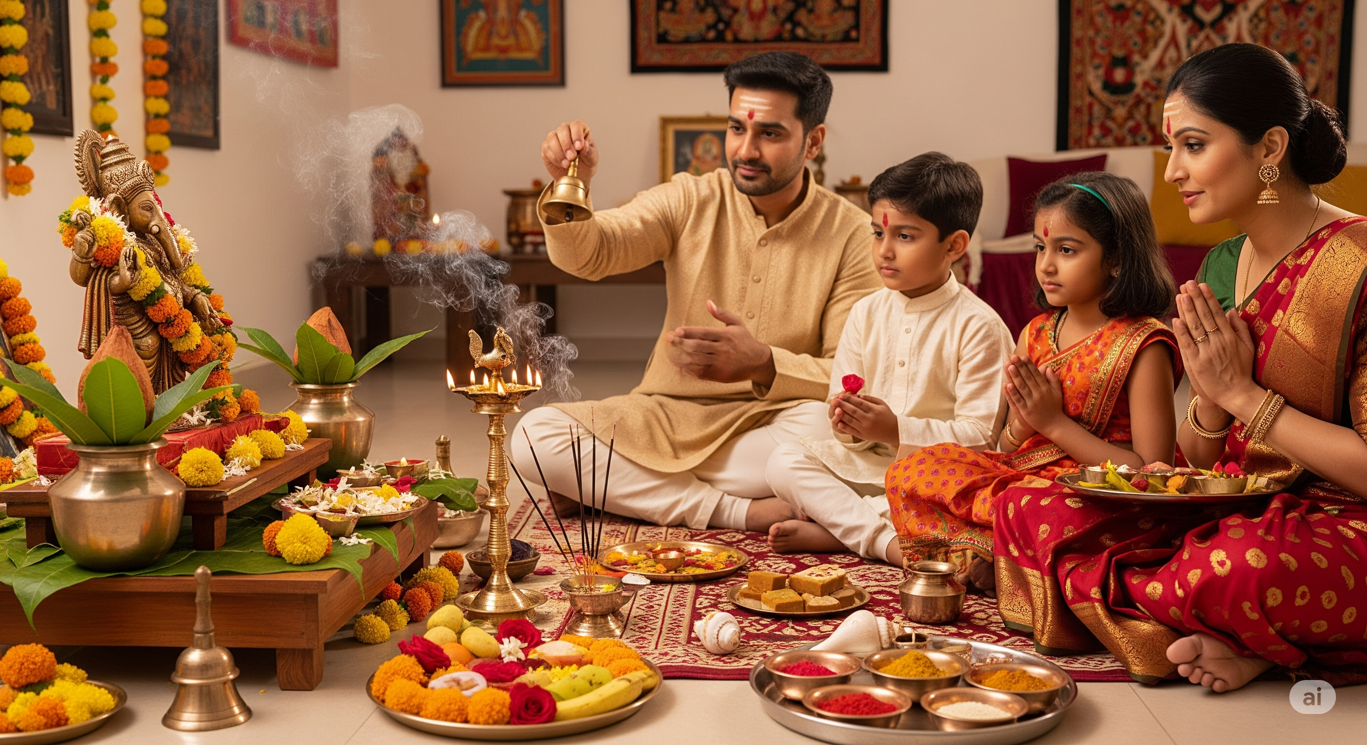 10.8 Inch Graceful Satin Lotus Design Pooja Mat